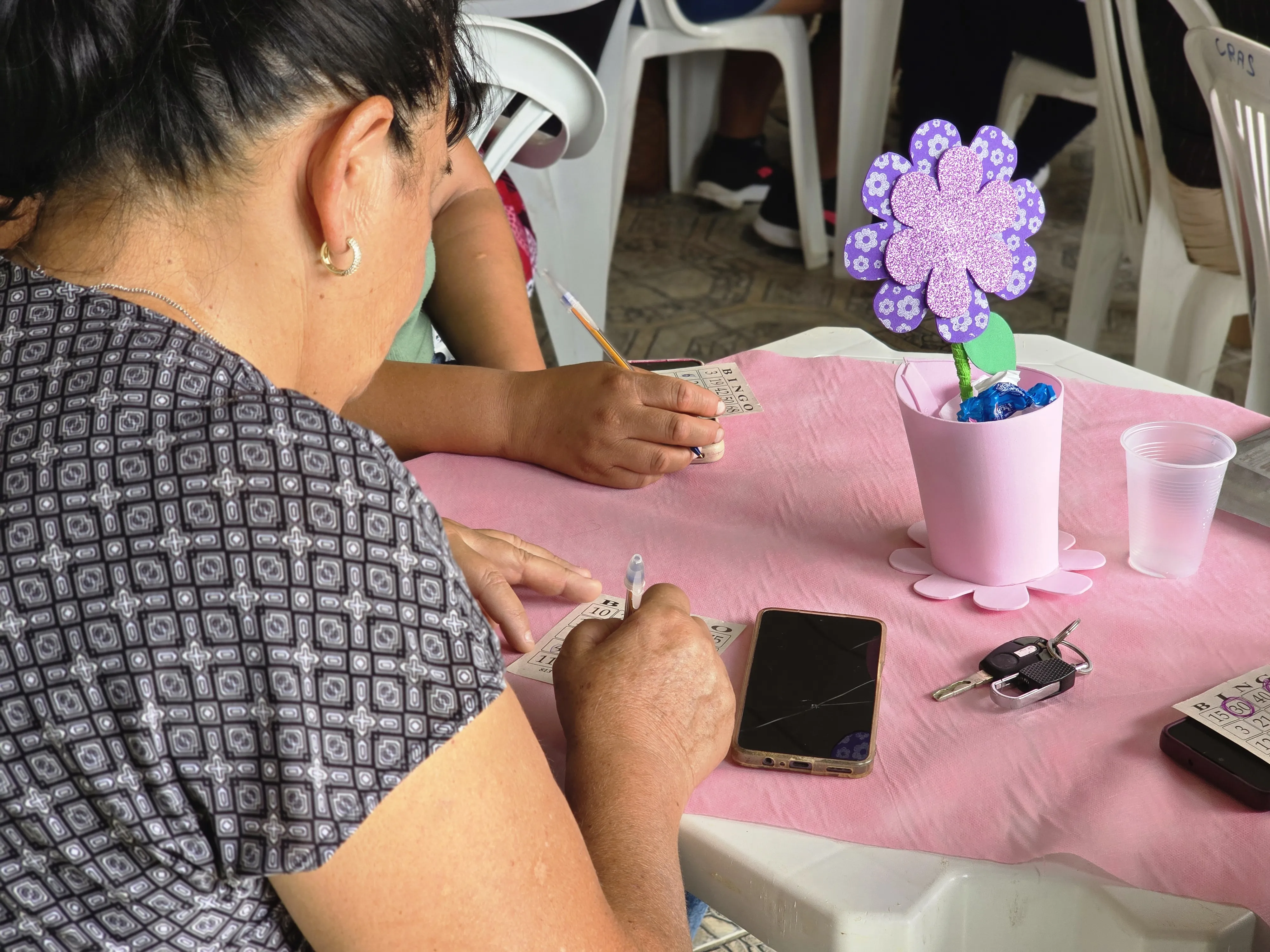 Um dos destaques da programação foi o bingo, que reuniu muitas participantes e trouxe um clima animado do começo ao fim. O bingo foi recheado de prêmios e gerou aquele tipo de alegria que contagia, com risadas, torcida e participação de todas. Além da diversão, a atividade também funcionou como um momento de integração, aproximando mulheres de diferentes idades e histórias. O objetivo foi celebrar com leveza e criar memória afetiva, mostrando que a valorização também pode acontecer em um ambiente descontraído. Foi uma tarde de encontro e de alegria compartilhada.