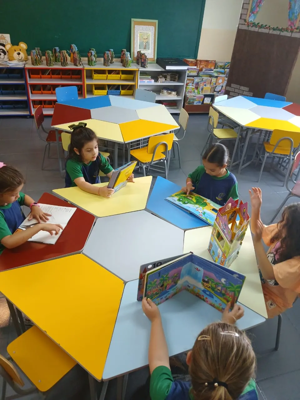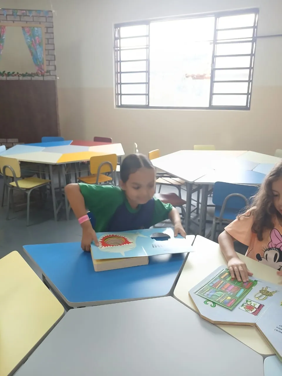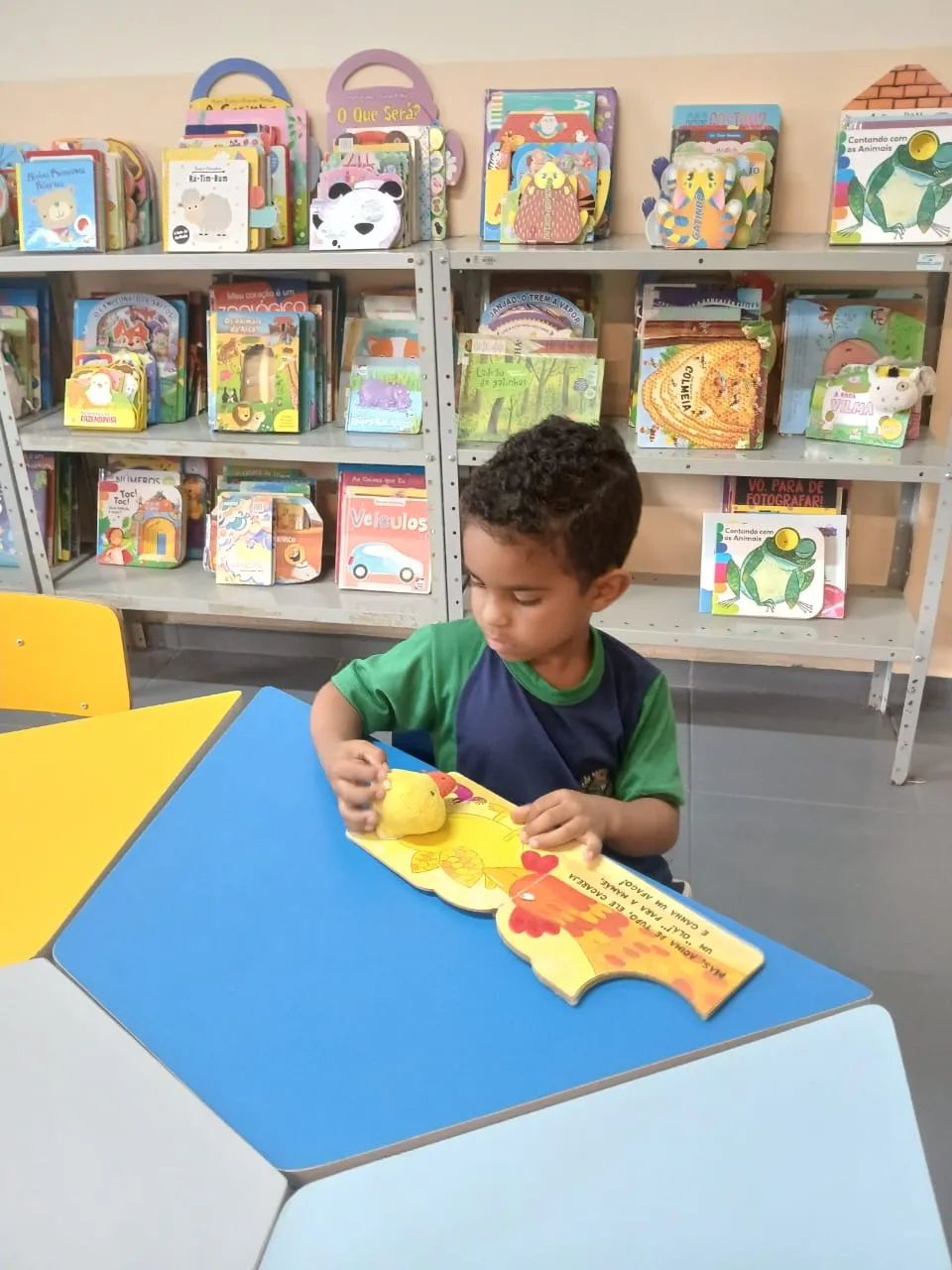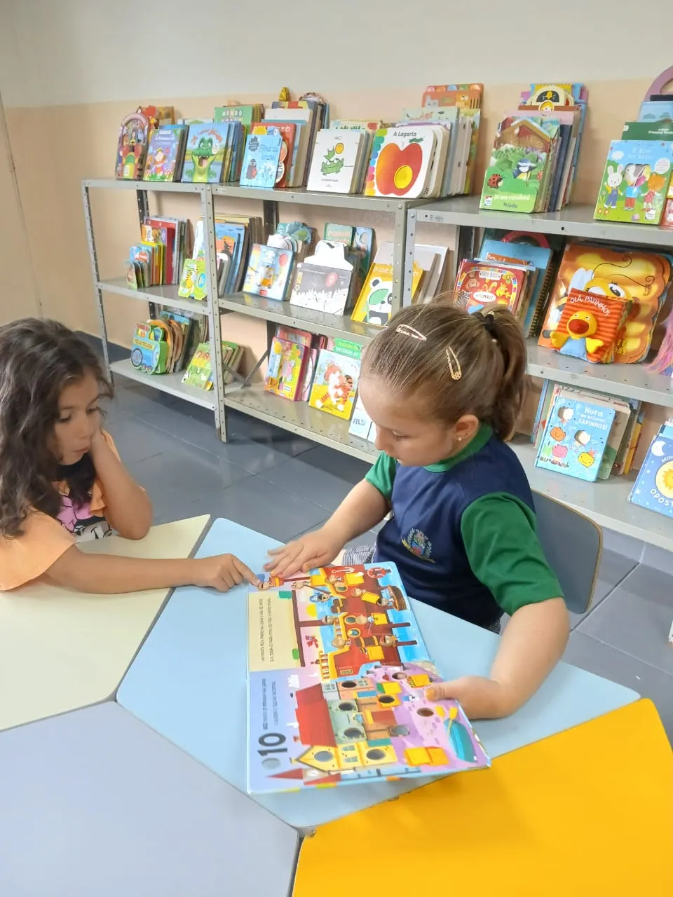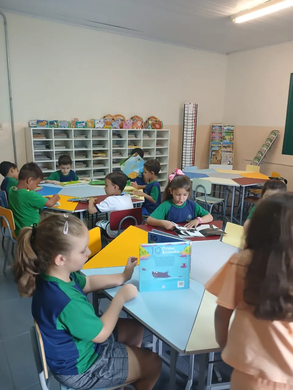 Quem disse que precisa sair da escola pra viajar? A turma do Pré II Regular mostrou que basta um livro aberto para o mundo aparecer, e a biblioteca virar passaporte. Entre capas coloridas, ilustrações curiosas e histórias que chamam a atenção logo no começo, as crianças viveram uma experiência simples e ao mesmo tempo poderosa: escolher o que ler, folhear com calma, descobrir personagens e se deixar levar pela imaginação. É nesse tipo de momento que o aprendizado acontece de um jeito leve, natural e cheio de significado, do jeito que a infância pede.