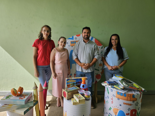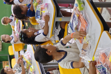 No primeiro dia de aula, os alunos da Escola Antônio Ferreira, da Pré-Escola Luzia Sanches Diniz e da Creche Tereza Rossi receberam kits de materiais escolares.
