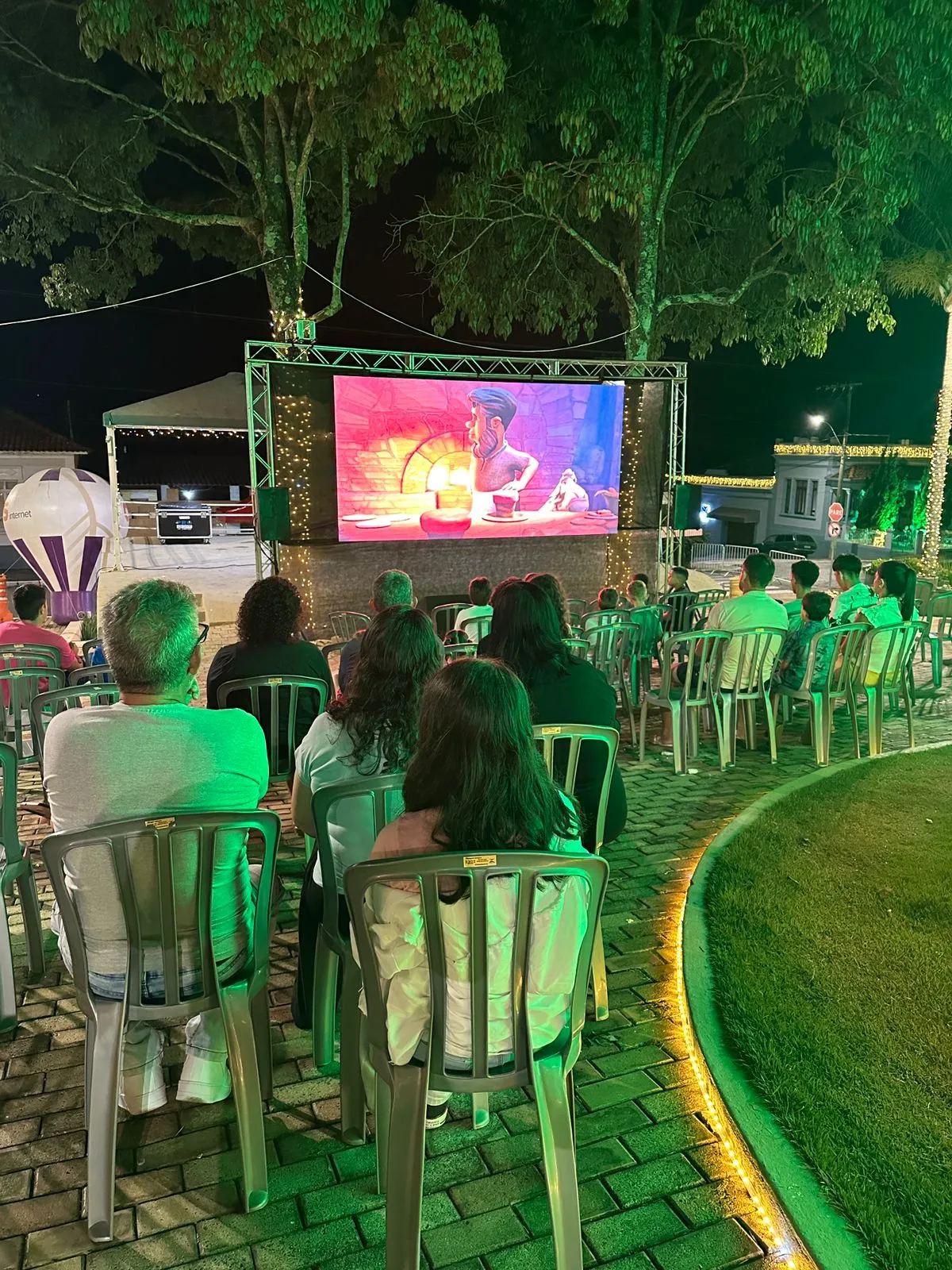 A proposta do cinema ao ar livre trouxe uma atmosfera gostosa e acolhedora. Aquele clima de fim de ano que tem cheiro de lembrança boa: criança rindo alto, casal sentado pertinho, família inteira reunida, gente conversando, se cumprimentando, se encontrando. Uma noite leve — e leveza também é cultura. Porque cultura não é só palco: é criar oportunidades para as pessoas viverem algo diferente, sem precisar sair da cidade, sem complicação, com acesso e com carinho.