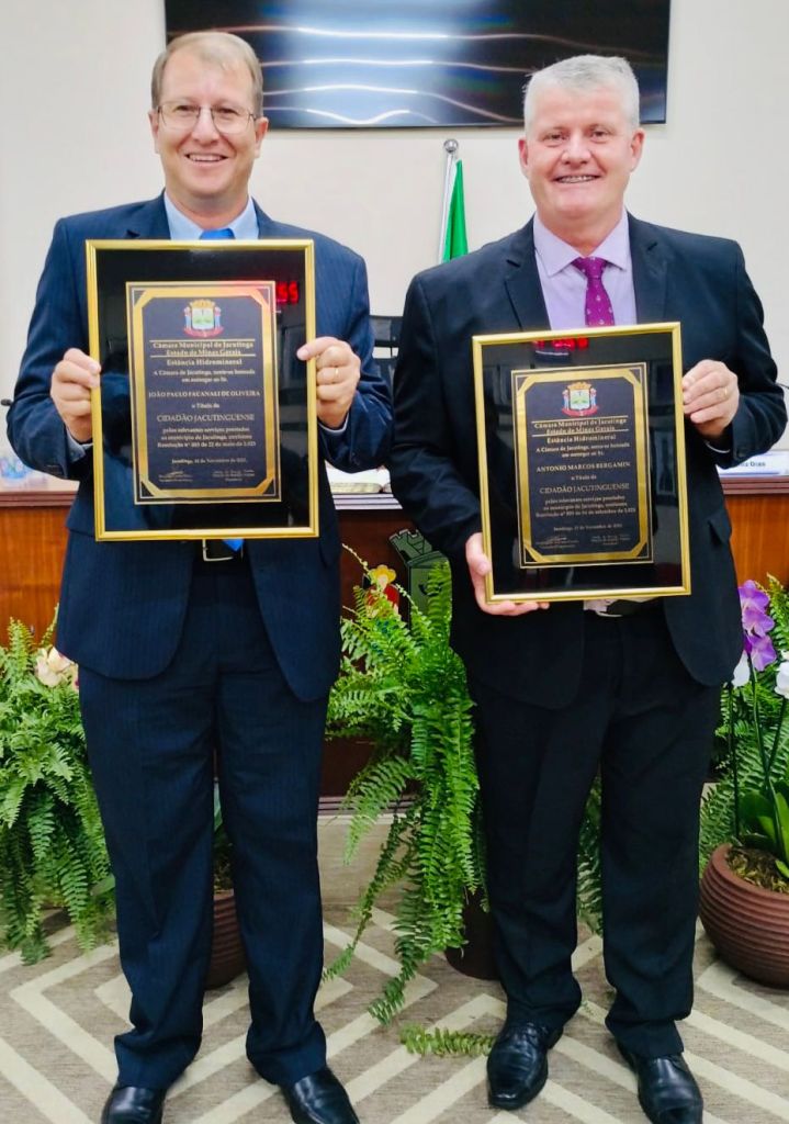 Prefeito João Paulo e o Vice Marquinhos do Escritório expressam sinceros agradecimentos pela distinta honra de receberem o título de cidadão Jacutinguense.