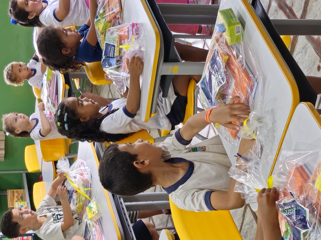 No primeiro dia de aula, os alunos da Escola Antônio Ferreira, da Pré-Escola Luzia Sanches Diniz e da Creche Tereza Rossi receberam kits de materiais escolares.